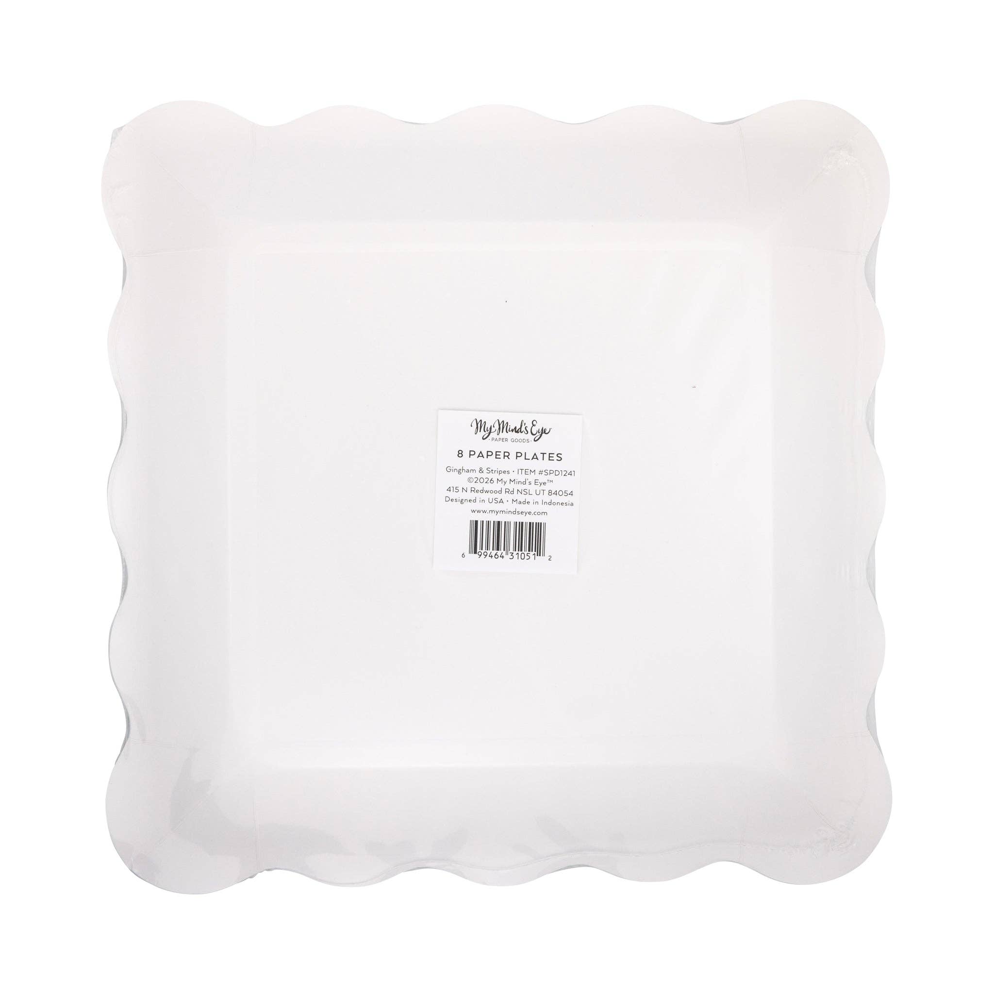 Gingham and Stripes Scalloped Square Plate Set (x8)